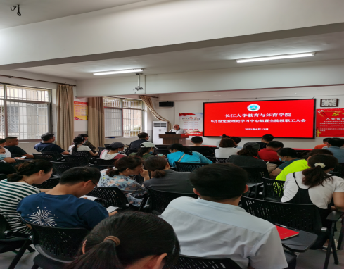 6月17日下午,hahabet在5教203召开6月份党委理论中心组学习暨全体教职工政治理论学习会。
